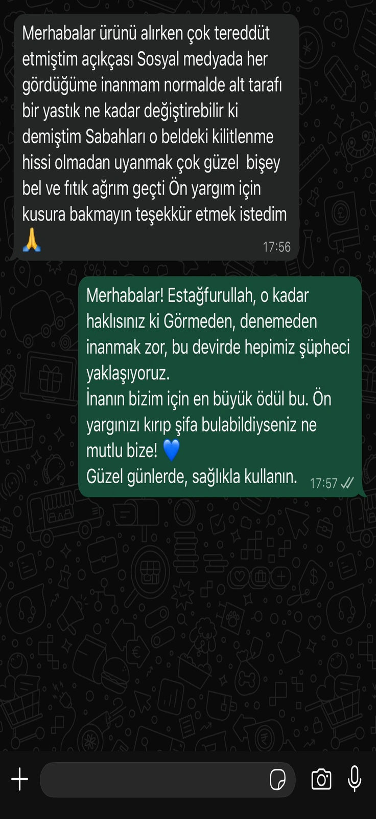 Bugün OrtoYastık Hizalama Yastığını sipariş edin ve 90 gün boyunca kendi deneyiminizle farkı hissedin. Bu süre içinde ürünü dilediğiniz gibi kullanın ve sağladığı konforu bizzat test edin.